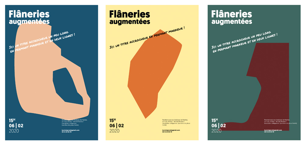 À partir de cette charte graphique, affiches, flyers, site Internet de présentation, application de réalité augmentée et une carte papier du quartier à la disposition des flâneurs seront déclinés prochainement.