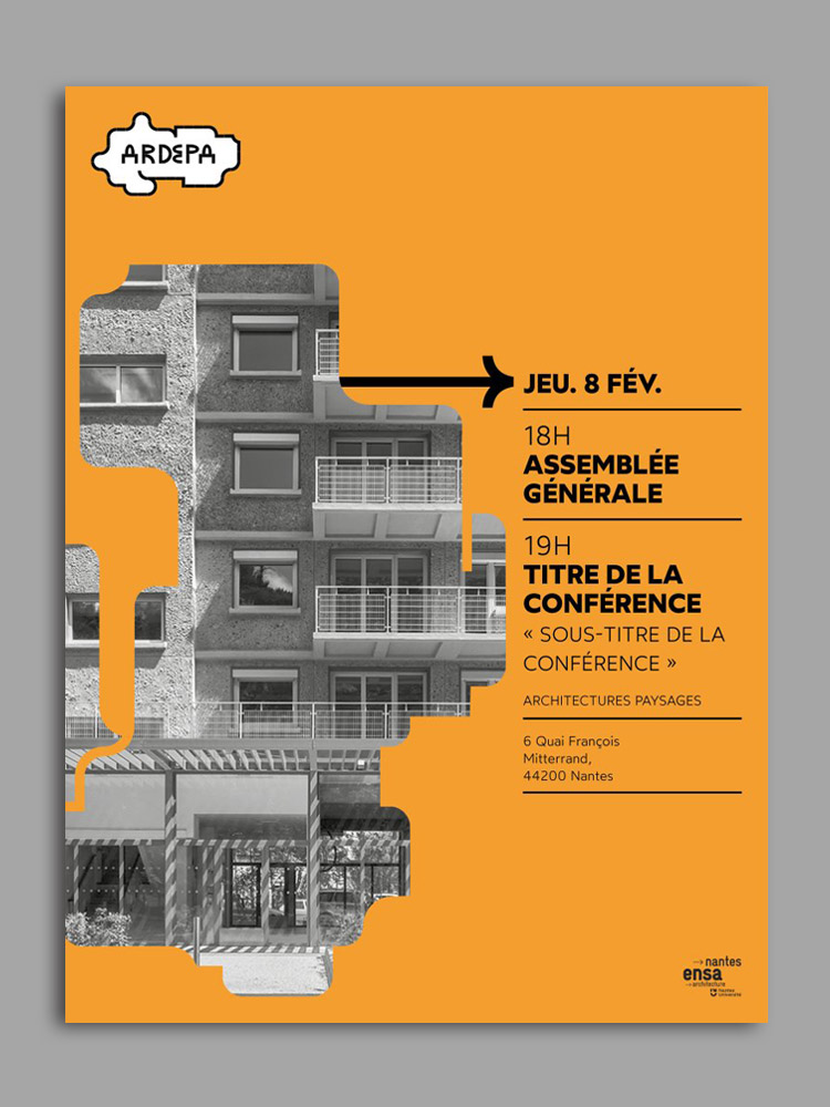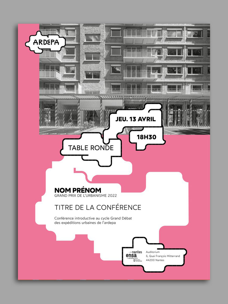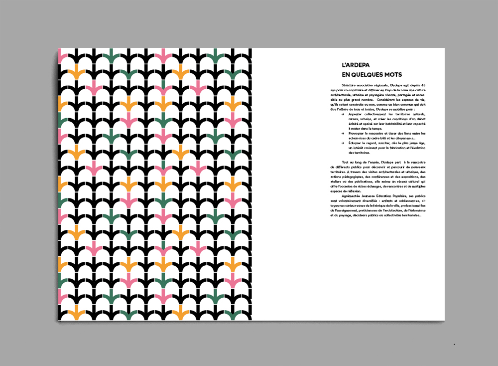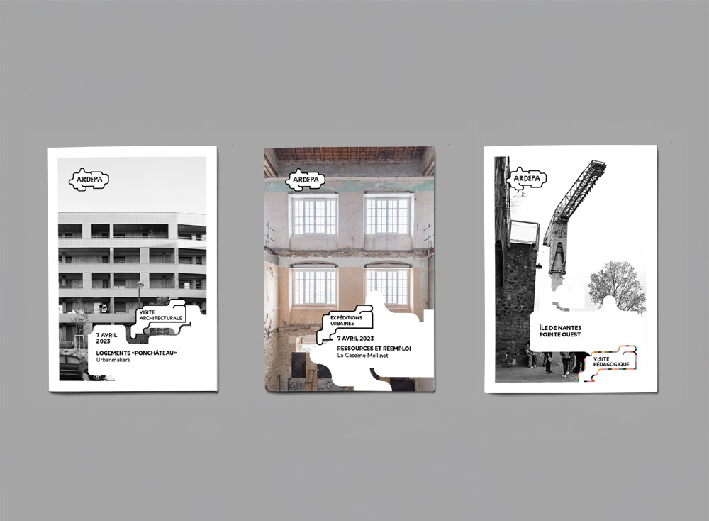Le mot ARDEPA est un acronyme, il ne renvoi pas à lui seul un imaginaire, le partie pris est donc de partir d’un logo typographique pouvant exprimé à lui seul une symbolique forte des notions d’architecture et de territoires, associatif, libre et sérieux à la fois, à partir desquels se décline l’ensemble de la nouvelle identité visuelle. Dans un jeu habillé de construction et d’assemblage, trois modules composent l’ensemble de cette nouvelle écriture.