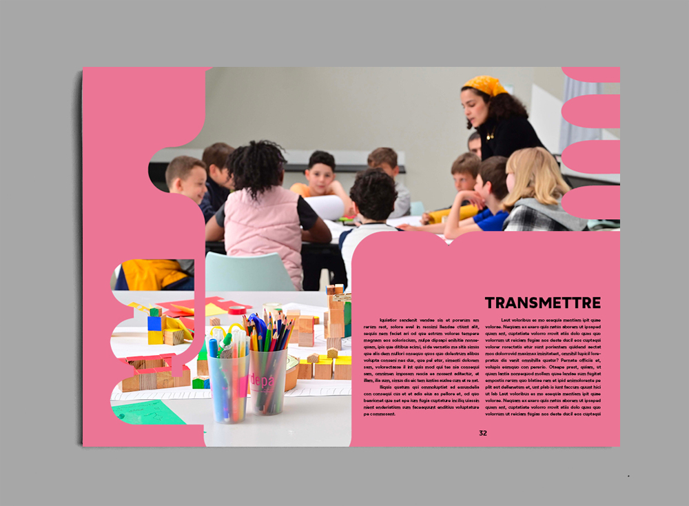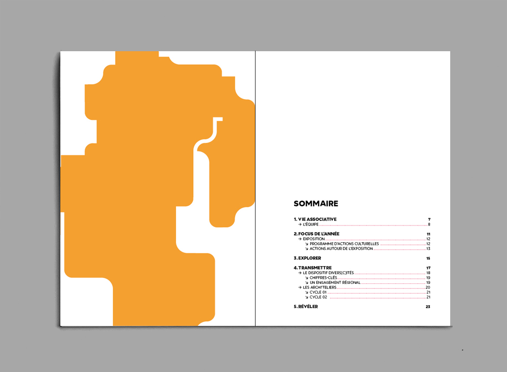 À l’intérieur des livrets, des éléments de la charte graphique viennent ponctuer la lecture pour la rendre plus visible avant d’être lisible.