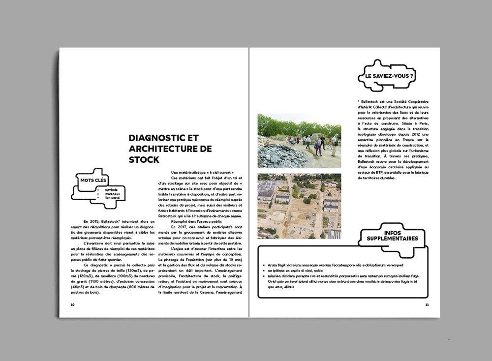 Deux des trois livrets sont imprimés et façonnés en interne, format A4 et en noir et blanc. La mise en page prend en compte les bords d’impressions et un façonnage sans découpage pour gagner du temps.