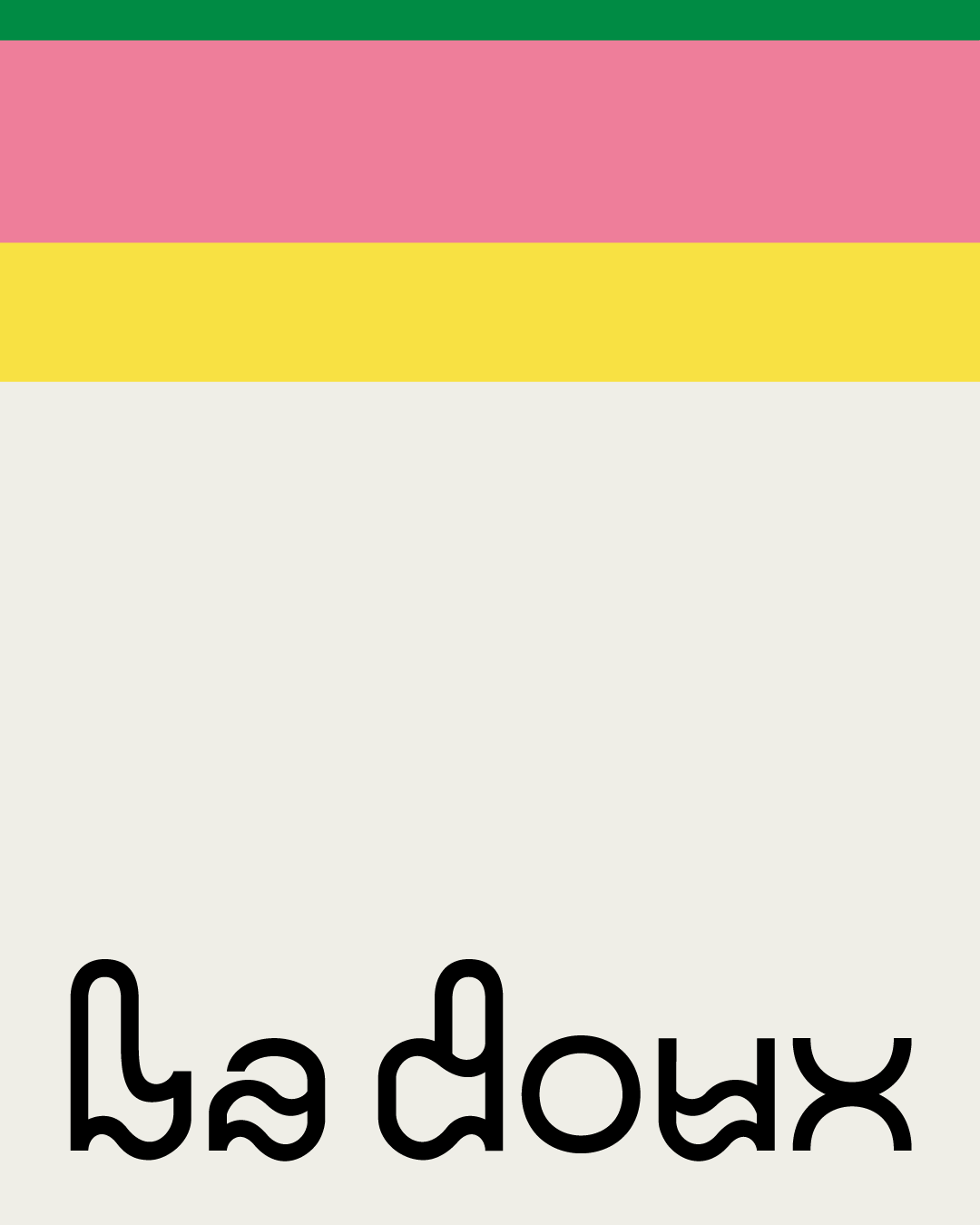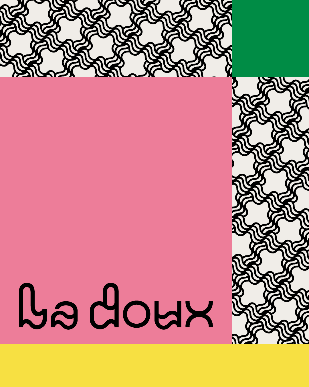 Partant de l’idée simple d’évoquer à la fois une page et une vague (La Doux est un lieu de résidence de la maison d’édition situé dans un moulin), je suis partie d’un module simple de vague qui m’a servi de base pour dessiner le typogramme « La Doux » et son idéogramme.